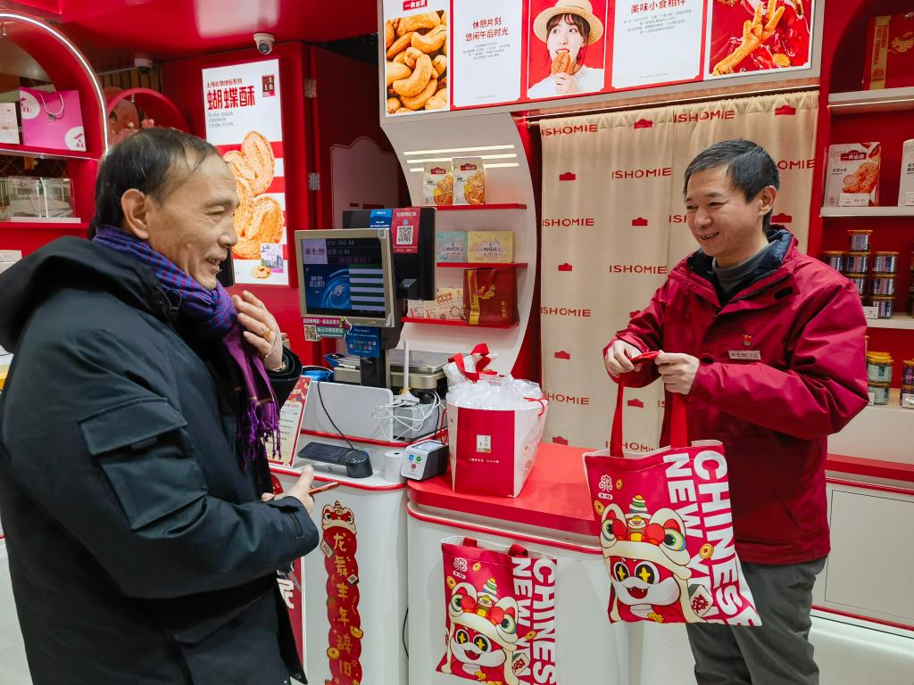 新華社上海1月20日電(記者陳愛平)走進(jìn)位于南京路步行街的第一食品商店,喜慶紅火的新春裝飾、琳瑯滿目的非遺美食、排隊(duì)精挑細(xì)選年貨的顧客、笑著稱重裝袋的售貨員……過(guò)年的幸福感在掀開擋風(fēng)門簾瞬間“拉滿”。