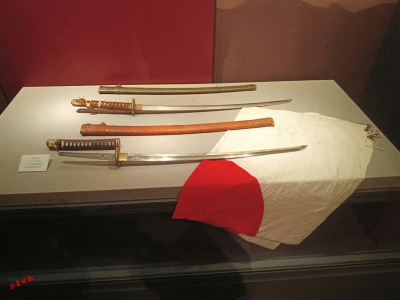 6.刻有“太原入城凱旋紀念復(fù)興皇國恢弘天業(yè)”字跡的日軍九八式軍刀。