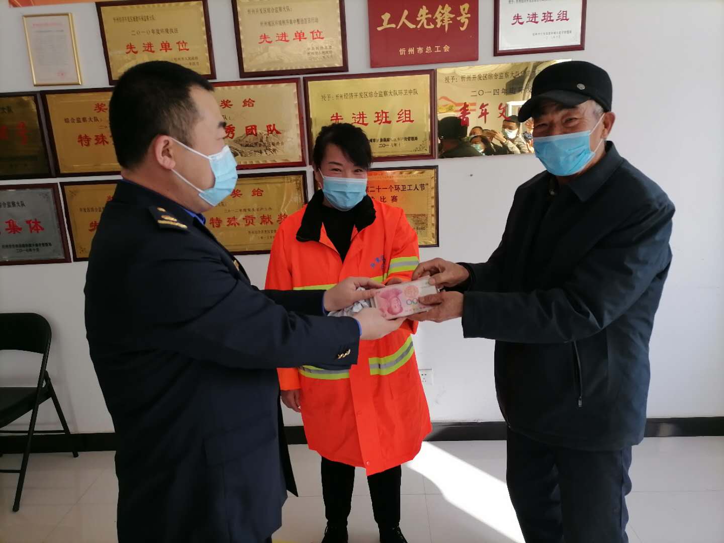 2月5日上午,來到忻州開發(fā)區(qū)城管綜合執(zhí)法隊辦公室。連日來,因丟失2萬元現金籠罩在69歲農民工趙大爺和他一家人心頭的煩惱和惆悵一掃而光。