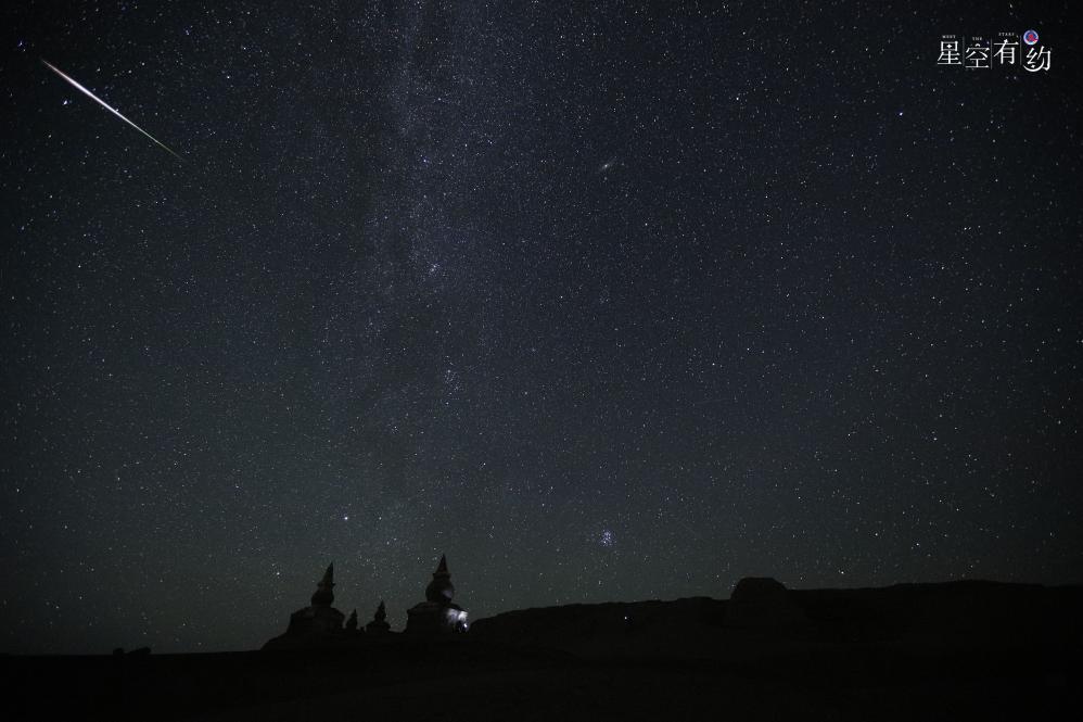 2018年8月13日,在內(nèi)蒙古阿拉善盟額濟(jì)納旗拍攝的英仙座流星雨。(周博 攝)