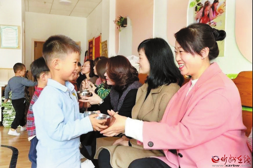 3月8日,忻州市幼兒園雁門分園舉辦了以感恩為主題的親子活動(dòng),通過形式多樣的活動(dòng)讓孩子們陪媽媽一起過節(jié),引導(dǎo)幼兒從小學(xué)會感恩,讓媽媽們感受到孩子的成長與愛。圖為活動(dòng)當(dāng)天,幼兒將自己做的梨湯送給媽媽。 (本報(bào)通訊員 攝)