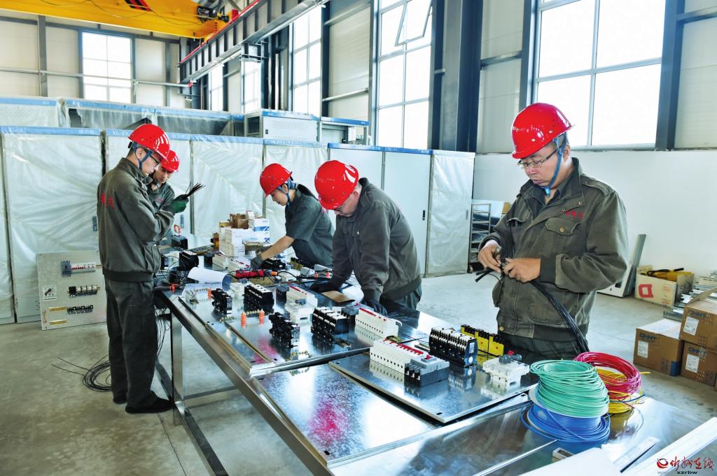 忻州經(jīng)濟(jì)開發(fā)區(qū)新材料產(chǎn)業(yè)園區(qū)山西先通電力設(shè)備制造有限公司生產(chǎn)車間一角。本報記者 馮曉磊攝