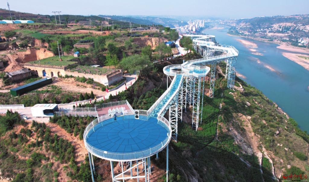 本報訊(記者魯明強(qiáng) 張劍雄)傍晚時分,位于保德縣城東北部的義門鎮(zhèn)廟峁村山巔的玻璃棧道霓虹閃爍,游人絡(luò)繹不絕。人們在玻璃棧道眺望遠(yuǎn)方,奔流不息的黃河、巍然屹立的天橋水電站、華燈初上的保德縣城和府谷縣城夜景盡收眼底。人們在燈光璀璨的九曲黃河造型的玻璃棧道上走過一個個聲光電烘托的主題區(qū)域,體驗著自由浪漫、驚險刺激的樂趣。這是近日記者在保德縣采訪時看到的情景。