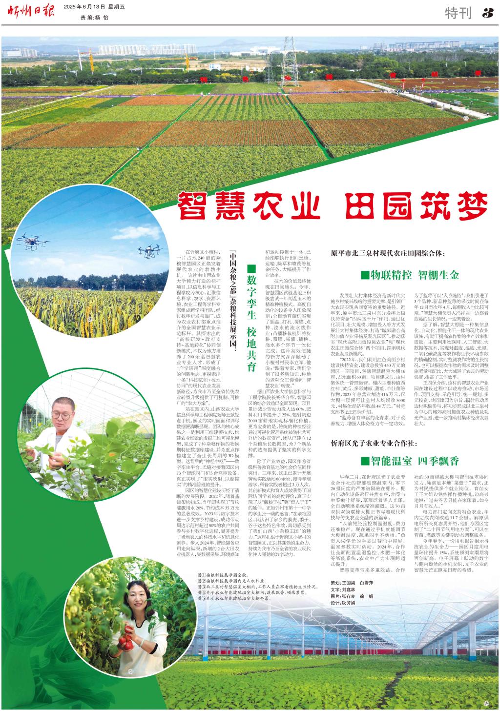 在忻府區(qū)小檀村,一片占地240畝的雜糧智慧園區(qū)正煥發(fā)著現(xiàn)代農(nóng)業(yè)的勃勃生機。這片由山西農(nóng)業(yè)大學(xué)傾力打造的標(biāo)桿項目,以信息科學(xué)與工程學(xué)院為核心,匯聚信息科學(xué)、農(nóng)學(xué)、資源環(huán)境、農(nóng)業(yè)工程等學(xué)科專家組成跨學(xué)科團隊,經(jīng)過數(shù)年研發(fā)與推廣,成為農(nóng)業(yè)農(nóng)村部重點推介的全國智慧農(nóng)業(yè)示范標(biāo)桿。其探索出的“高校研發(fā)+政府支持+基地轉(zhuǎn)化”協(xié)同創(chuàng)新模式,不僅為地方培養(yǎng)了200余名智慧農(nóng)業(yè)專業(yè)人才,形成了“產(chǎn)學(xué)研用”深度融合的創(chuàng)新生態(tài),更探索出一條“科技賦能+校地協(xié)同”的現(xiàn)代農(nóng)業(yè)發(fā)展新路徑,為我市乃至全省傳統(tǒng)農(nóng)業(yè)轉(zhuǎn)型升級提供了可復(fù)制、可推廣的“農(nóng)大方案”。
