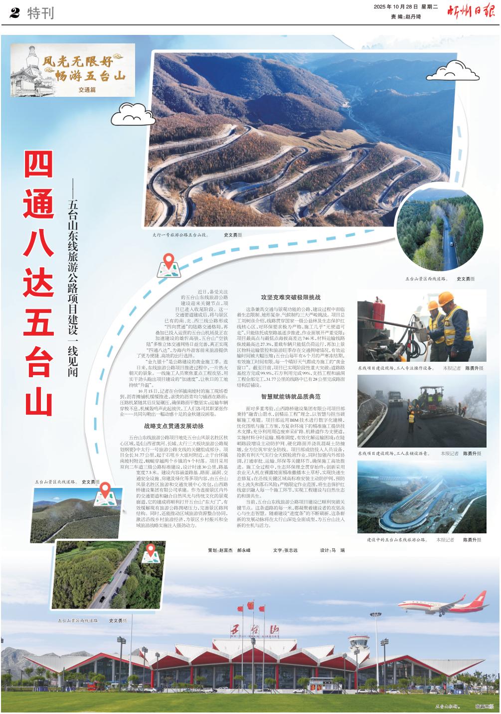 近日,備受關(guān)注的五臺(tái)山東線旅游公路建設(shè)迎來關(guān)鍵節(jié)點(diǎn),項(xiàng)目已進(jìn)入收尾階段。這一交通要道建成后,將與景區(qū)已有的南、北、西三線公路形成“四向貫通”的陸路交通格局,再疊加已投入運(yùn)營的五臺(tái)山機(jī)場(chǎng)及正在加速建設(shè)的雄忻高鐵,五臺(tái)山“空鐵陸”多維立體交通網(wǎng)絡(luò)日益完善,真正實(shí)現(xiàn)“四通八達(dá)”,為海內(nèi)外游客前來旅游提供了更為便捷、高效的出行選擇。