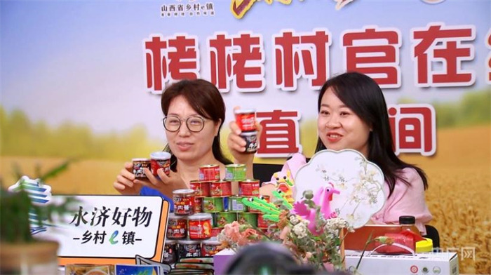 永濟(jì)市栲栳鎮(zhèn)鄉(xiāng)村e(cuò)鎮(zhèn)里,主播正在銷售當(dāng)?shù)剞r(nóng)特產(chǎn)品(央廣網(wǎng)發(fā) 永濟(jì)市融媒體中心供圖)