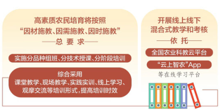 高素質(zhì)農(nóng)民培育將按照“因材施教、因需施教、因時(shí)施教”總要求,實(shí)施分品種組班、分技術(shù)授課、分階段培訓(xùn),綜合采用課堂教學(xué)、現(xiàn)場教學(xué)、實(shí)踐實(shí)訓(xùn)、線上學(xué)習(xí)、觀摩交流等培訓(xùn)形式,提高培訓(xùn)時(shí)效。依托全國農(nóng)業(yè)科教云平臺(tái)、“云上智農(nóng)”App等在線學(xué)習(xí)平臺(tái),開展線上線下混合式教學(xué)和考核。在全省選擇2個(gè)縣、每個(gè)縣遴選100人,共計(jì)200人實(shí)施學(xué)用貫通培養(yǎng)。試點(diǎn)由縣級(jí)農(nóng)廣校牽頭會(huì)同承擔(dān)試點(diǎn)任務(wù)的有關(guān)單位和機(jī)構(gòu)具體實(shí)施,培育期兩年。