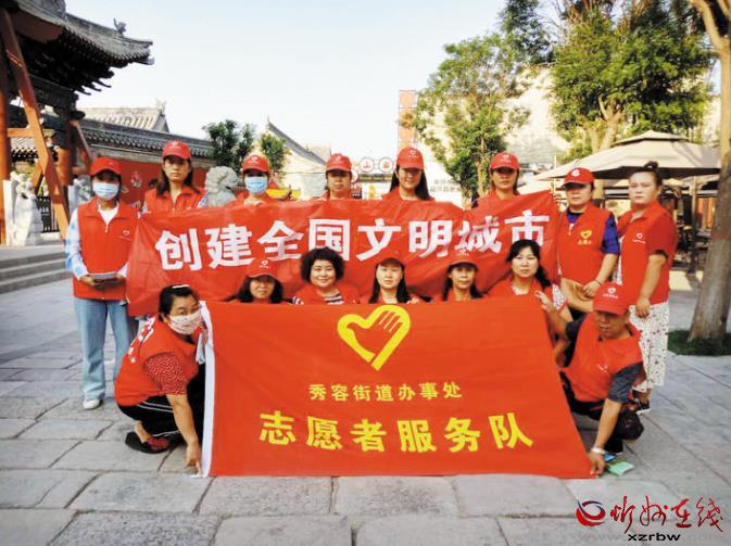 聚是一團(tuán)火,散是滿天星。一個(gè)微笑、一份禮讓、一只援手,都是志愿服務(wù)精神的繽紛綻放。也許,一個(gè)人的力量是有限的,但榜樣帶給市民的正能量是無窮的。古城游客紛紛表示,作為忻州人,在創(chuàng)建文明城市過程中,要當(dāng)好文明古城的傳播者,主動傳遞文明新風(fēng),用自身的行動帶動更多的朋友們參與到文明創(chuàng)建中。從我做起,從小事做起,讓志愿服務(wù)在忻州古城久行成風(fēng)、眾行成氣,匯聚文明向上的力量,為文明城市創(chuàng)建精彩代言。圖為秀容辦志愿者服務(wù)隊(duì)在忻州古城泰山廟廣場。 (本報(bào)記者 王國梁)