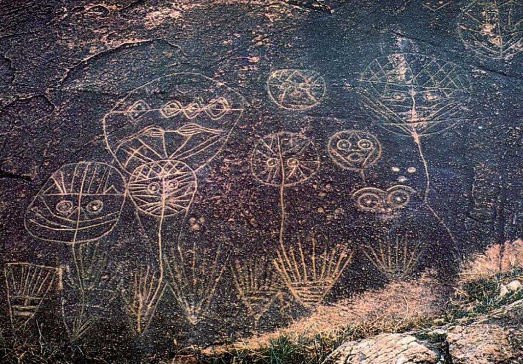 (上圖:新石器時(shí)代《稷神崇拜圖》;下圖:《稷神崇拜圖》復(fù)原圖。)