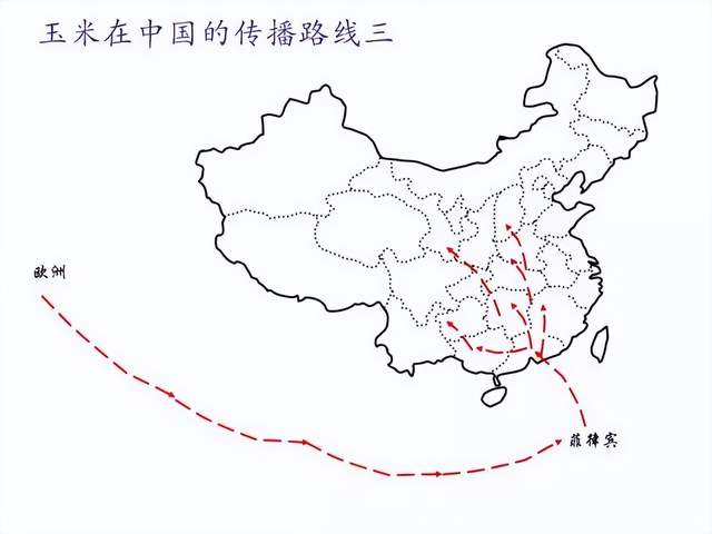 ▲ 路線3:先從歐洲傳到菲律賓,再經(jīng)海路傳入我國東南沿海各省。