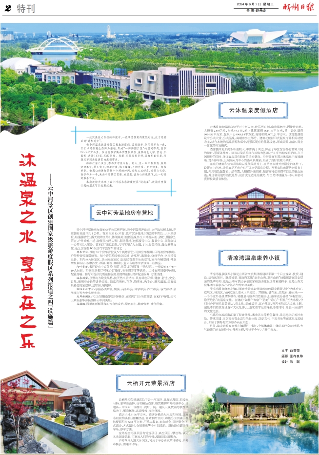 云中河溫泉旅游度假區(qū)集旅游度假、溫泉康養(yǎng)、休閑娛樂(lè)為一體,以云中河景觀生態(tài)廊為基礎(chǔ),形成“一廊兩園三區(qū)”的空間布局,面積22.75平方公里。區(qū)內(nèi)有多家高品質(zhì)度假酒店、溫泉特色民宿、營(yíng)地、公寓等,共計(jì)143家、3087間房。房型、床位類(lèi)型多樣,設(shè)施配套完善,可滿足不同類(lèi)型游客的度假需求。