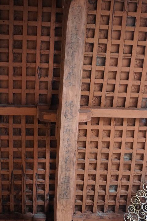 在大殿工作的第三天,更大的驚喜到來。林徽因發(fā)現(xiàn)在一根梁底部有非常模糊的墨跡。她仰起頭,努力從不同角度觀察,已經(jīng)能夠讀出許多帶有冗長唐代官銜的人名,其中最重要的是“佛殿主上都送供女弟子寧公遇”。