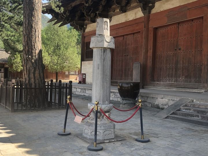 “徽因素來遠(yuǎn)視,獨見‘女弟子寧公遇’之名,深怕有誤,又詳細(xì)檢查階前經(jīng)幢上的姓名。幢上除有官職者外,果然也有‘女弟子寧公遇’者,稱為‘佛殿主’,名列在諸尼之前。”梁思成認(rèn)為,佛殿主之名既然寫在梁上,又刻在經(jīng)幢上,則經(jīng)幢的建造應(yīng)當(dāng)是與殿同時,或在殿完工的時候。而石經(jīng)幢帶有紀(jì)年為“唐大中十一年”,即公元857年。這樣,殿的年代就可以推測出了。