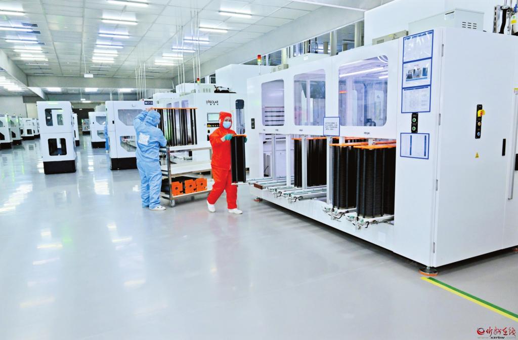 項(xiàng)目于2023年3月投產(chǎn)運(yùn)營(yíng)。目前,2號(hào)廠房已實(shí)現(xiàn)滿產(chǎn),1號(hào)廠房設(shè)備安裝調(diào)試已近尾聲,即將投產(chǎn)。項(xiàng)目全面投產(chǎn)達(dá)效后,產(chǎn)能達(dá)到“50GW電池+50GW組件”,可實(shí)現(xiàn)年產(chǎn)值60億元,年上繳稅收3億元,提供就業(yè)崗位1400個(gè)。