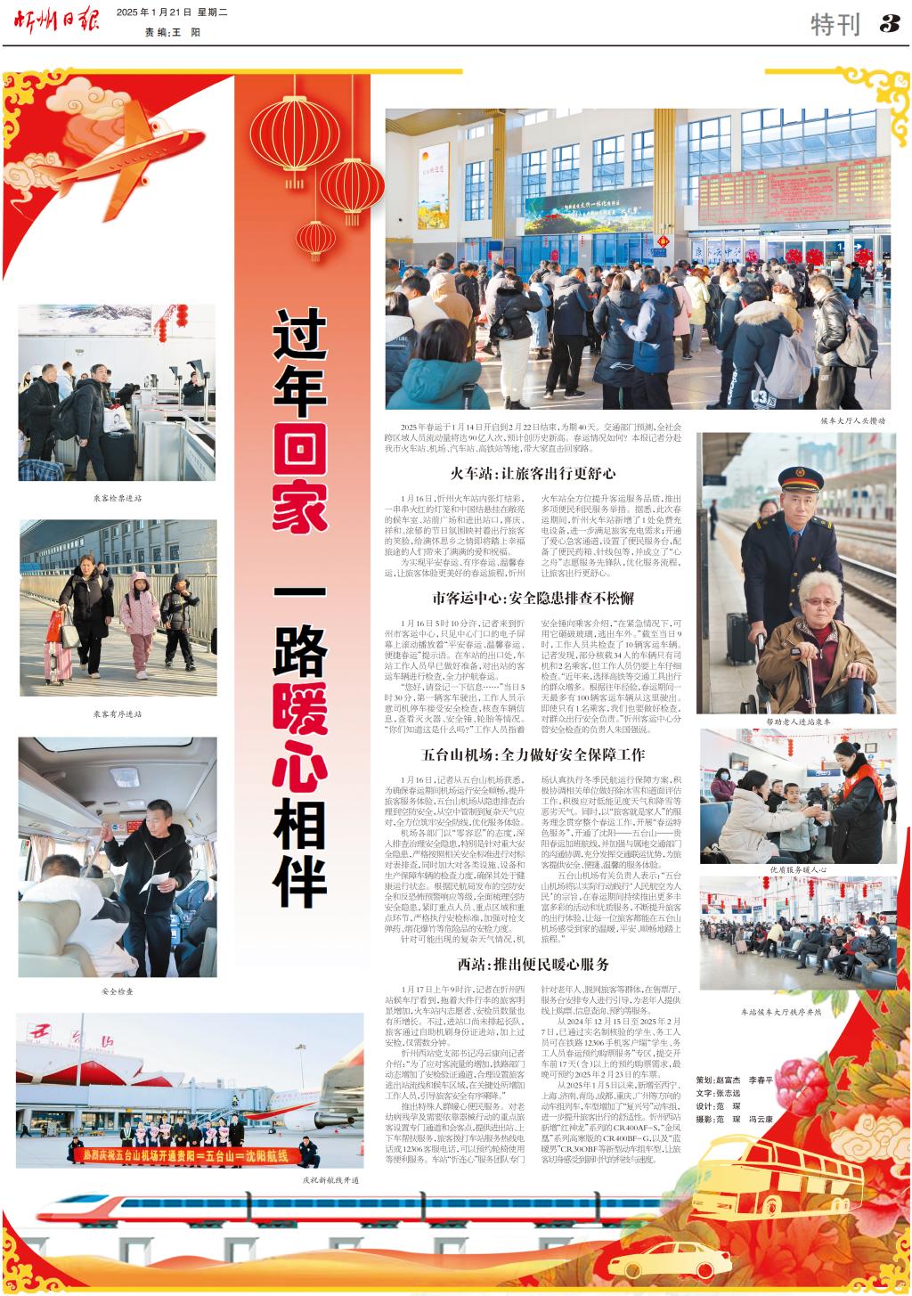 2025年春運(yùn)于1月14日開啟到2月22日結(jié)束,為期40天。交通部門預(yù)測(cè),全社會(huì)跨區(qū)域人員流動(dòng)量將達(dá)90億人次,預(yù)計(jì)創(chuàng)歷史新高。春運(yùn)情況如何?本報(bào)記者分赴我市火車站、機(jī)場(chǎng)、汽車站、高鐵站等地,帶大家直擊回家路。