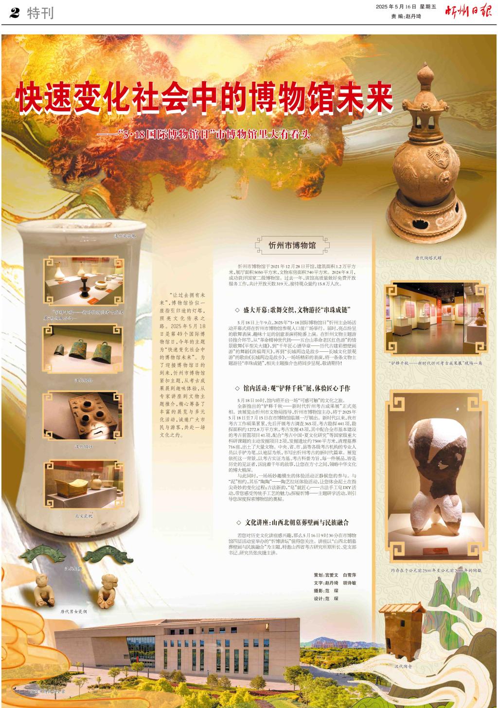 “讓過(guò)去擁有未來(lái)”,博物館恰似一座指引歸途的燈塔,照亮文化傳承之路。2025年5月18日是第49個(gè)國(guó)際博物館日,今年的主題為“快速變化社會(huì)中的博物館未來(lái)”。為了迎接博物館日的到來(lái),忻州市博物館緊扣主題,從考古成果展到趣味體驗(yàn),從專家講座到文物主題推介,精心籌備了豐富的展覽與多元化活動(dòng),誠(chéng)邀廣大市民與游客,共赴一場(chǎng)文化之約。