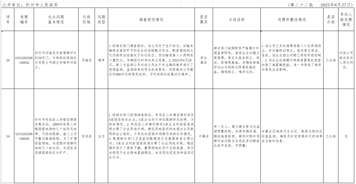 中央生態(tài)環(huán)境保護督察組群眾信訪舉報轉辦和邊督邊改公開情況一覽表(第二十二批)