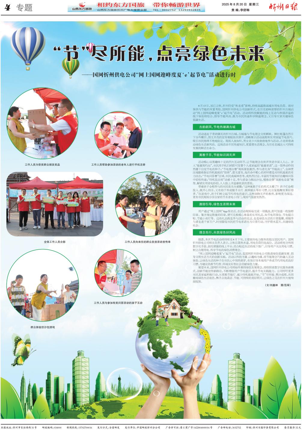 展望未來,國網(wǎng)忻州供電公司將始終秉持綠色發(fā)展理念,持續(xù)探索數(shù)字化服務(wù)新模式,創(chuàng)新節(jié)能宣傳新路徑,不斷增強(qiáng)用戶節(jié)電意識(shí),提升節(jié)電實(shí)踐能力。公司呼吁更多市民及家庭積極行動(dòng),從更換節(jié)能燈、減少待機(jī)能耗開始,“節(jié)”盡所能、聚沙成塔,共同擦亮綠色生活底色,攜手點(diǎn)亮清潔、節(jié)能、可持續(xù)的美好明天,讓綠色之花在忻州大地絢麗綻放。