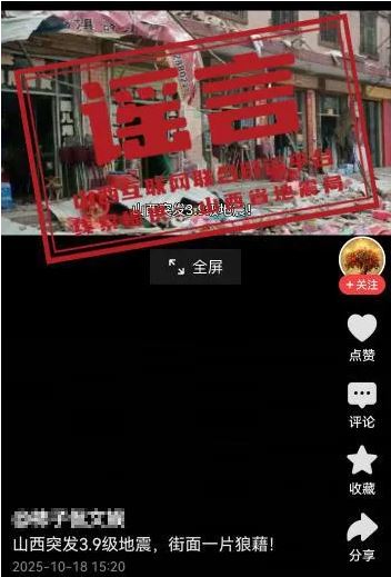 10月18日,有網(wǎng)民發(fā)布“山西突發(fā)3.9級(jí)地震,街面一片狼藉!”相關(guān)信息,引發(fā)網(wǎng)民關(guān)注,經(jīng)向相關(guān)部門確認(rèn),該信息與事實(shí)不符。