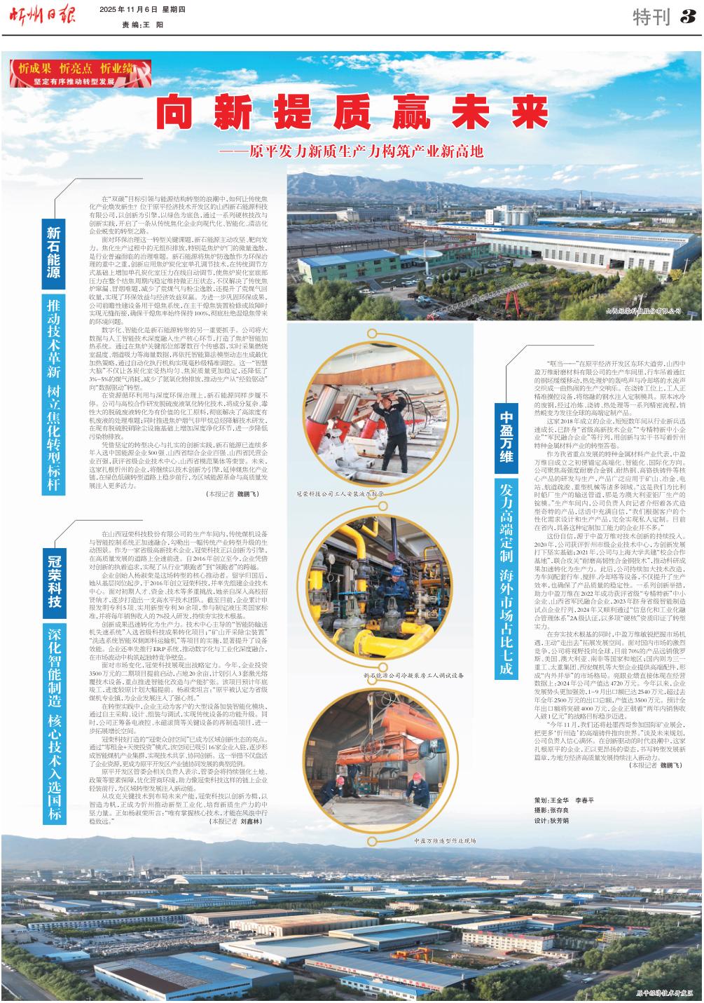從攻克關(guān)鍵技術(shù)到布局未來產(chǎn)能,冠榮科技以創(chuàng)新為楫,以智造為帆,正成為忻州推動新型工業(yè)化、培育新質(zhì)生產(chǎn)力的中堅力量。正如楊淑榮所言:“唯有掌握核心技術(shù),才能在風浪中行穩(wěn)致遠。”(本報記者劉鑫林)