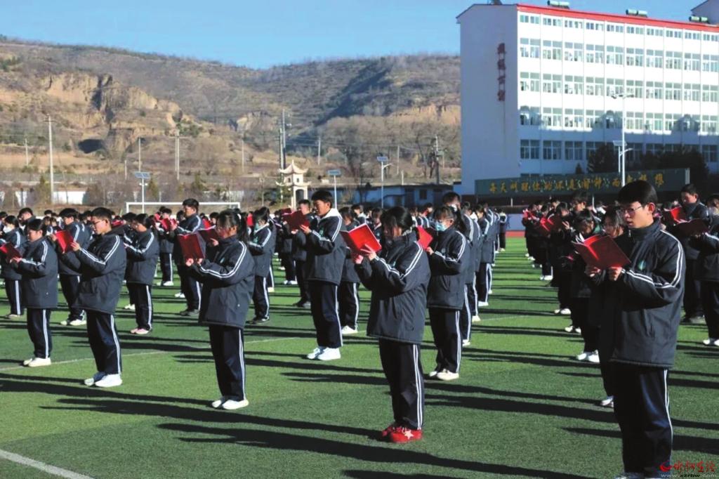 憲法晨讀潤心靈,法治精神伴成長。12月4日是第十二個國家憲法日,岢嵐中學全體師生齊聚操場,開展“憲法晨讀”活動,拉開了為期7天的校園“憲法宣傳周”活動序幕。
