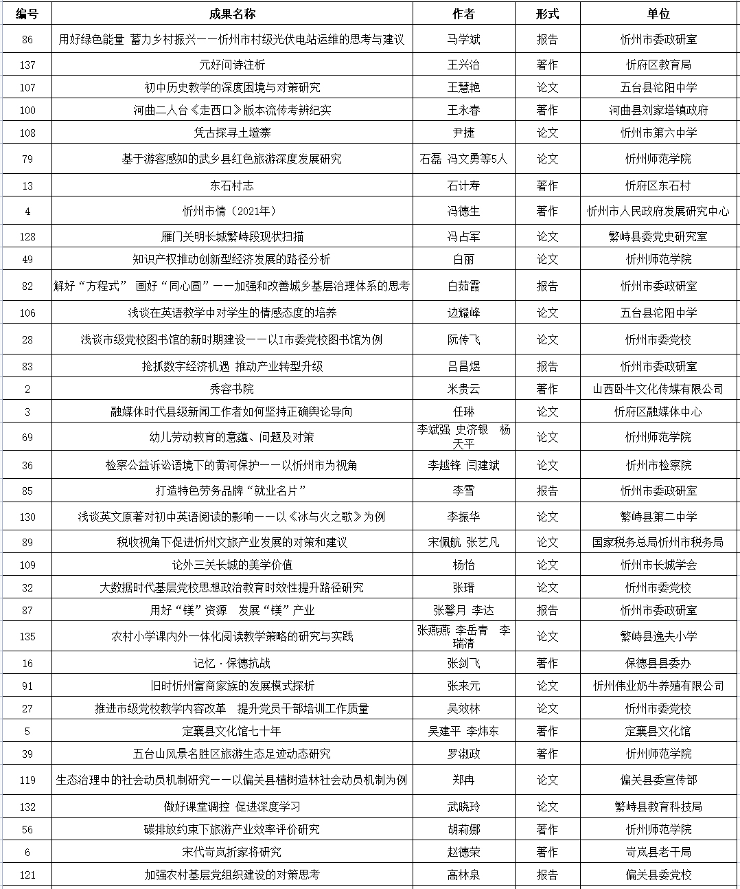 附件:忻州市社會(huì)科學(xué)研究?jī)?yōu)秀成果評(píng)獎(jiǎng)擬獲獎(jiǎng)名單