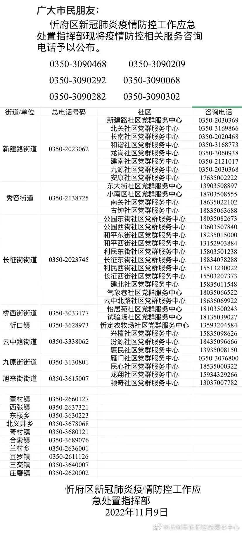 關(guān)于公布忻府區(qū)疫情防控靜態(tài)管理期間服務熱線電話的公告