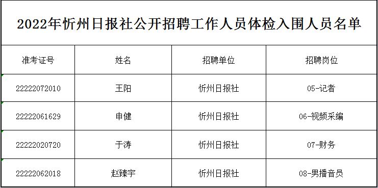 通過(guò)面試入圍體檢人員。
