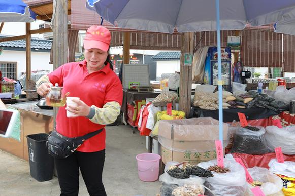 村民陸秀媚的攤位琳瑯滿目,擺得滿滿當當。求是記者 張芯蕊 攝