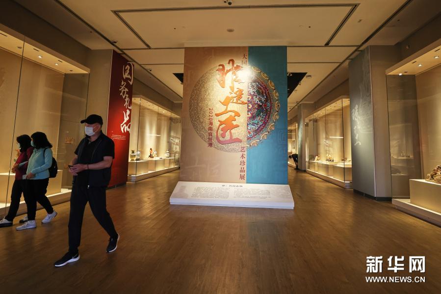 12月30日,人們?cè)诤D鲜〔┪镳^參觀2020海南自貿(mào)港大國非遺工匠藝術(shù)珍品展。近日,2020海南自貿(mào)港大國非遺工匠藝術(shù)珍品展在海南省博物館開展,展覽分為大國非遺工匠藝術(shù)珍品展和技藝傳承展兩大展區(qū)。珍品展展出北京景泰藍(lán)、雕漆、景德鎮(zhèn)陶瓷、海南工藝美術(shù)代表作品等具有代表性的非物質(zhì)文化遺產(chǎn)作品,在技藝傳承展區(qū),非遺手工藝人現(xiàn)場展演展示黎錦、苗繡、雙面繡、木雕等技法。(新華社記者 張麗蕓 攝)