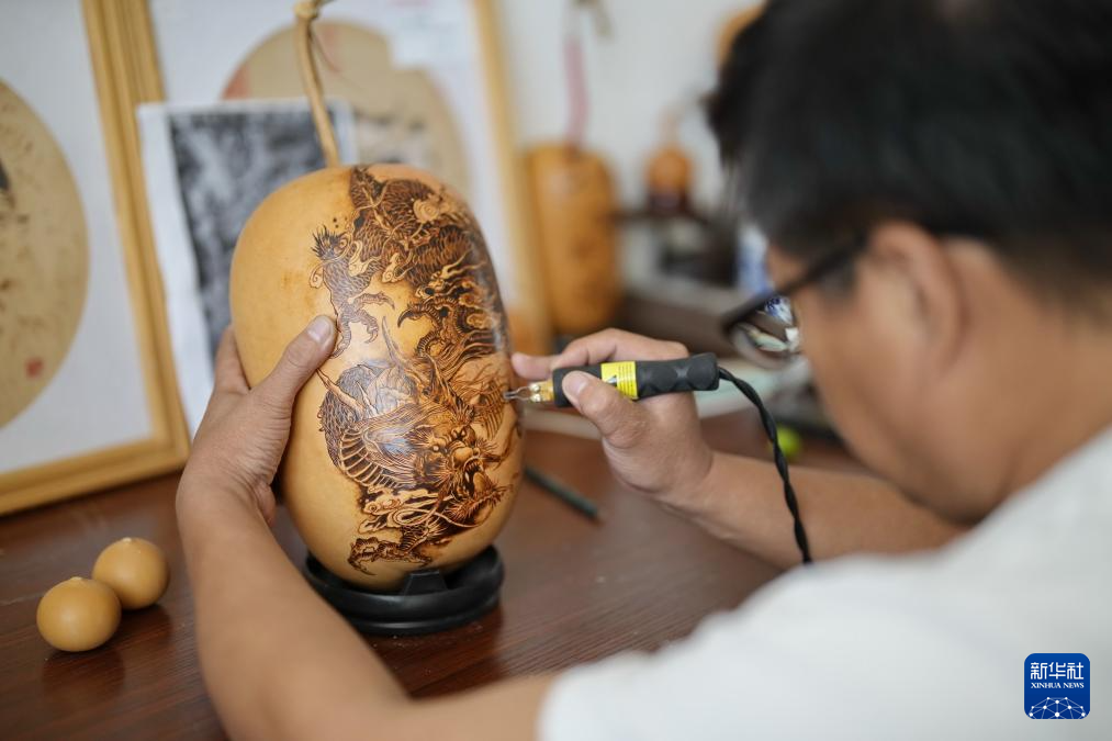 9月16日,烙畫藝人在玉田縣“非遺會(huì)客廳”工作室內(nèi)制作烙畫。