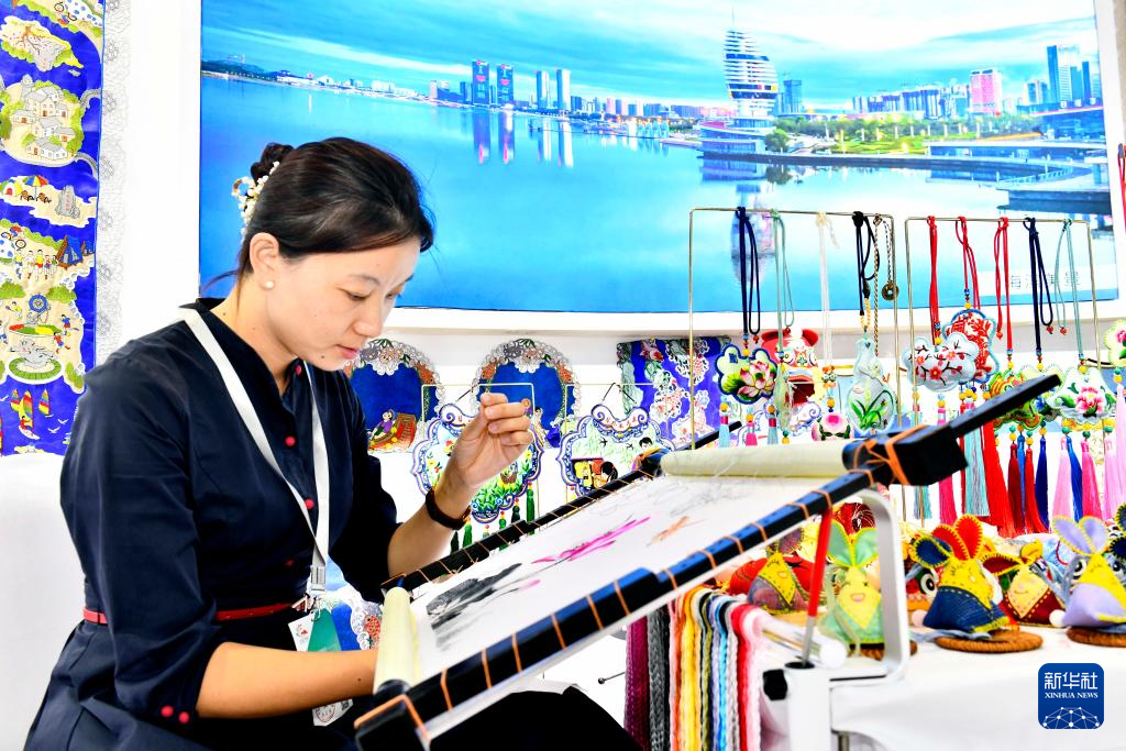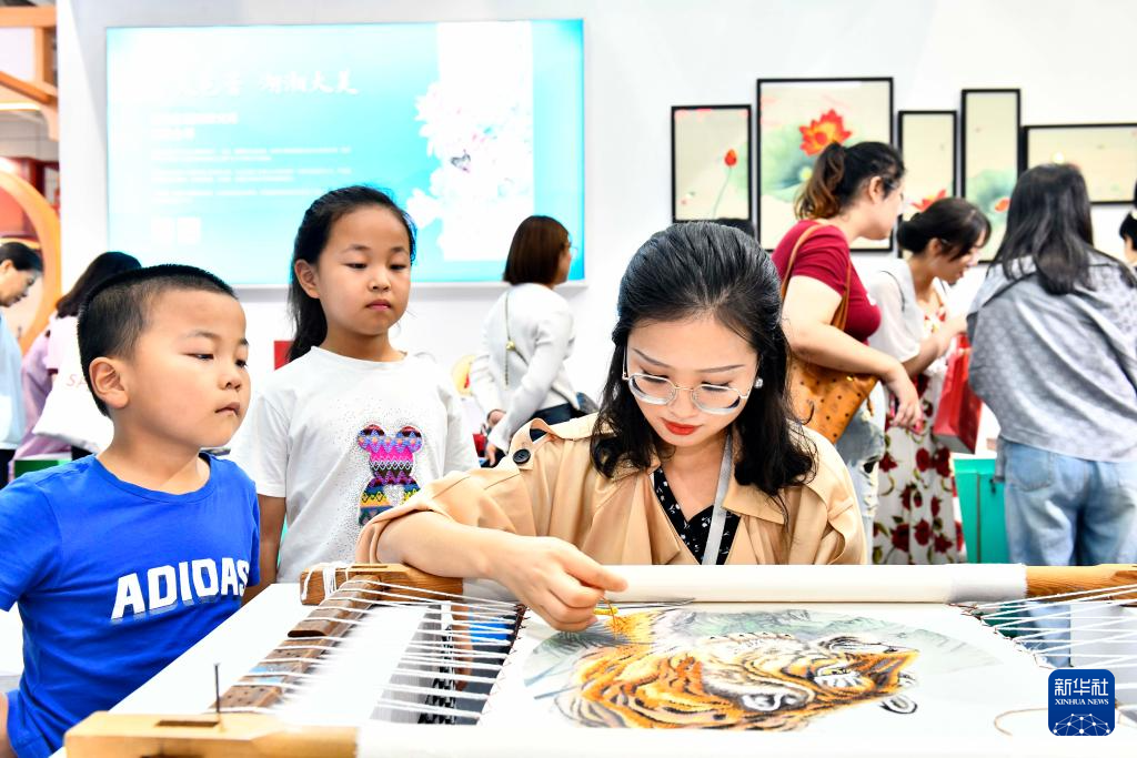 9月16日,在山東國際會(huì)展中心,來自湖南的非遺傳承人現(xiàn)場(chǎng)展示湘繡技藝。