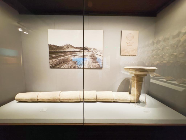 寧夏固原市原州區(qū)的戰(zhàn)國秦長城博物館展出的大型陶制“排水系統(tǒng)”。新華社記者許晉豫 攝