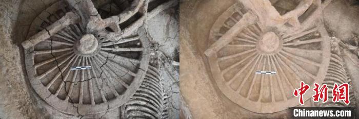 圖為山東曲阜車馬坑遺址修復前后對比圖。河南省文物考古研究院 供圖