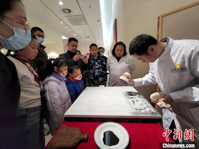 現(xiàn)場(chǎng)展示傳拓技藝,吸引觀眾圍觀欣賞。趙曉 攝
