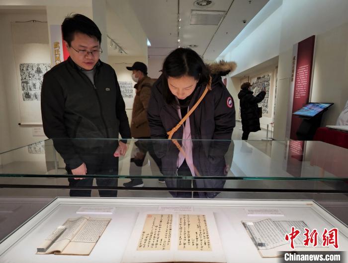 現(xiàn)場(chǎng)展出武梁祠西壁拓片。趙曉 攝