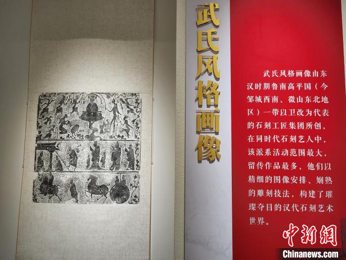 記者當(dāng)天在展覽現(xiàn)場(chǎng)了解到,武氏墓群位于今山東省濟(jì)寧市嘉祥縣城南15公里處,是一座東漢時(shí)期的家族墓地。武梁祠是其中的一座墓上石祠堂。以武梁祠為代表的武氏祠畫像,秉承三代鐘鼎玉器雕刻工藝,開啟魏晉唐宋繪畫的先河,其雕刻技藝之精妙,圖像內(nèi)容之豐富,居全國漢畫像石之首。