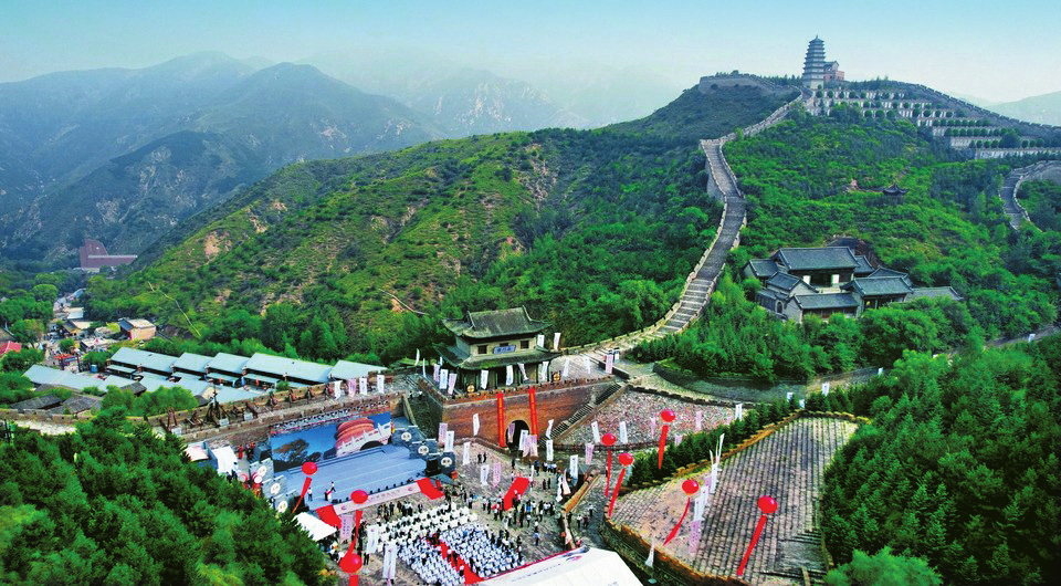 夏日的雁門關山花爛漫,翠林如海,行車穿梭在蜿蜒曲折的山路上,遠遠地就能望見雄踞在崇山峻嶺之間的雁門關關樓,連同兩側屹立對峙的山峰,如同雄鷹展翼,蔚為壯觀。