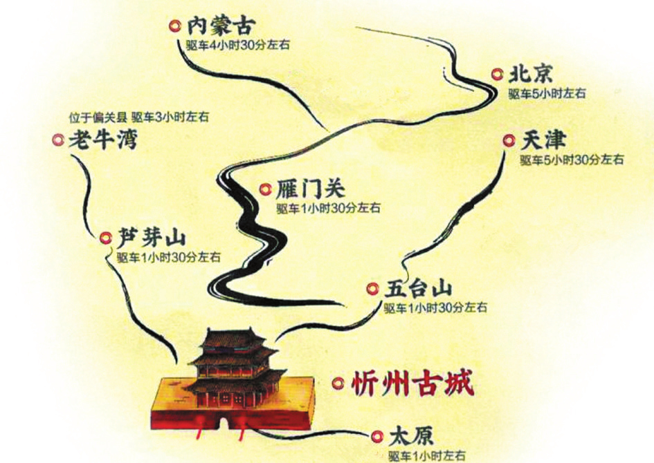 來到這里,你可以站在溝壑縱橫、梁峁起伏的黃土高原,欣賞懸崖峭立、水石相激的晉陜峽谷,也可以在古木參天、濃蔭蔽日的森林公園里散步,在百草茂盛、一望無垠的高山草甸上仰望星空。你可以游覽世界文化景觀遺產、佛教名山五臺山,也可以領略秀容、岢嵐、寧化、代州4座悠遠古城的各有千秋,登攀三關營堡、歷朝歷代的邊塞長城。你可以在偏關老牛灣古渡、河曲西口古渡搖櫓渡河,回想晉商的輝煌,也可以身臨夜襲陽明堡飛機場遺址,重溫榮耀,感受歷史的震撼……
