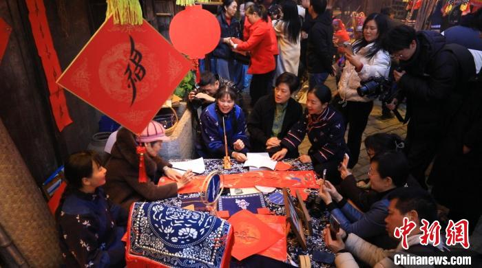 中新社湖南永州1月26日電 題:非遺活動(dòng)迎新年 女書(shū)文創(chuàng)受青睞