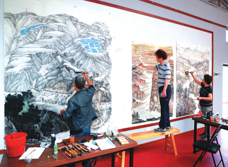 連綿的山巒、錯(cuò)落的民居、獨(dú)特的虎斑地貌、古樸的窯洞與層疊的梯田在藝術(shù)家筆下一一蘇醒。陜西女畫(huà)家祝秀琴初次來(lái)到趙家溝便被深深吸引:“這里村落風(fēng)貌保存完好,老樹(shù)、干柴、石頭皆是風(fēng)景,處處入畫(huà)。”在她眼中,趙家溝不僅擁有獨(dú)特的自然稟賦與豐富的旅游資源,其寫(xiě)生產(chǎn)業(yè)鏈的完備更令人贊嘆——從食宿安排到寫(xiě)生用具,從戶外寫(xiě)生點(diǎn)到室內(nèi)畫(huà)室研討,一應(yīng)俱全。