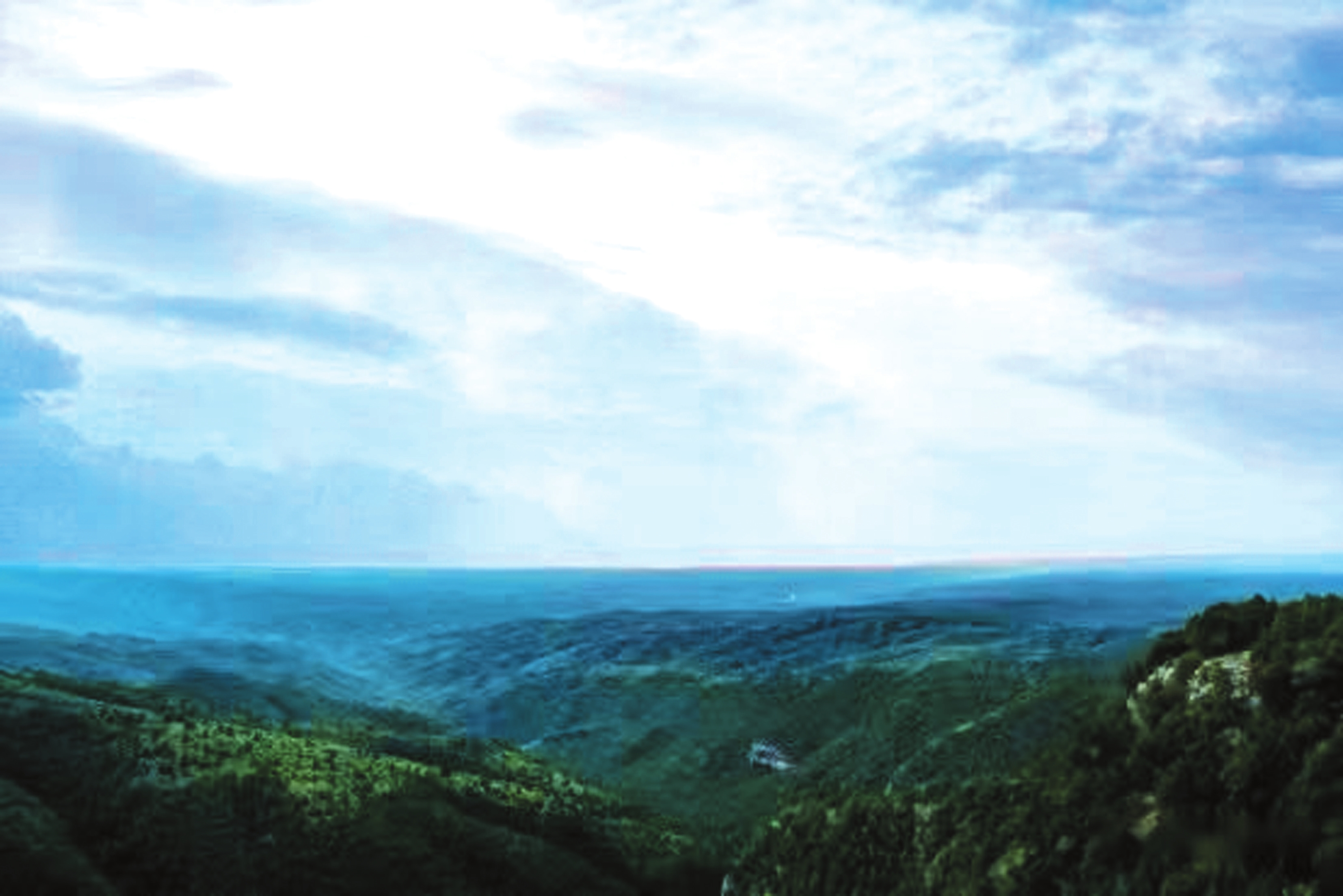 立于井油山巔,風(fēng)光盡收眼底。遠(yuǎn)山如黛,似畫師以淡墨隨性揮灑;云霧纏繞,像仙人隨手拋下的素紗。風(fēng)自山腳徐徐而來,攜著青草的鮮嫩與松針的醇厚,穿入肺腑。每一次呼吸都如飲甘露,令人心神一振,旅途的疲憊瞬間消散。八月的山澗,細(xì)流潺潺,其聲悅耳。日光透過枝葉縫隙,碎成點點金箔,在山坳間跳躍,為滿山濃綠注入了靈動氣息。密林深處,時而傳來野雞、鷓鴣的清啼,劃破山間靜謐;時而有野兔、松鼠竄動的窸窣聲,讓整座山都透著勃勃生機。