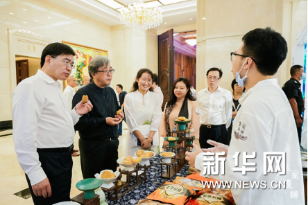 “遺·珍”版塊,主要展示了傳統(tǒng)醫(yī)藥類、傳統(tǒng)飲食類非遺項(xiàng)目。位于浙江之心的金華自然環(huán)境優(yōu)越,醫(yī)藥資源豐厚,孕育了眾多傳統(tǒng)醫(yī)藥項(xiàng)目。磐五味藥香傳世,壽仙谷、三溪堂、天一堂……傳統(tǒng)醫(yī)藥文化中洞見獨(dú)特的生命價(jià)值觀、健康養(yǎng)生觀,醫(yī)養(yǎng)身心,傳承健康生活理念?!胺沁z”美食蘊(yùn)含著婺人的智慧、婺學(xué)的底蘊(yùn)、婺文化的燦爛豐厚——本次展覽特設(shè)“非遺美食品嘗區(qū)”,剛出爐香噴噴的金華酥餅、精美可口的婺式糕點(diǎn)、鮮切生食的金華火腿讓上海民眾近距離感受“舌尖上的金華味道”。