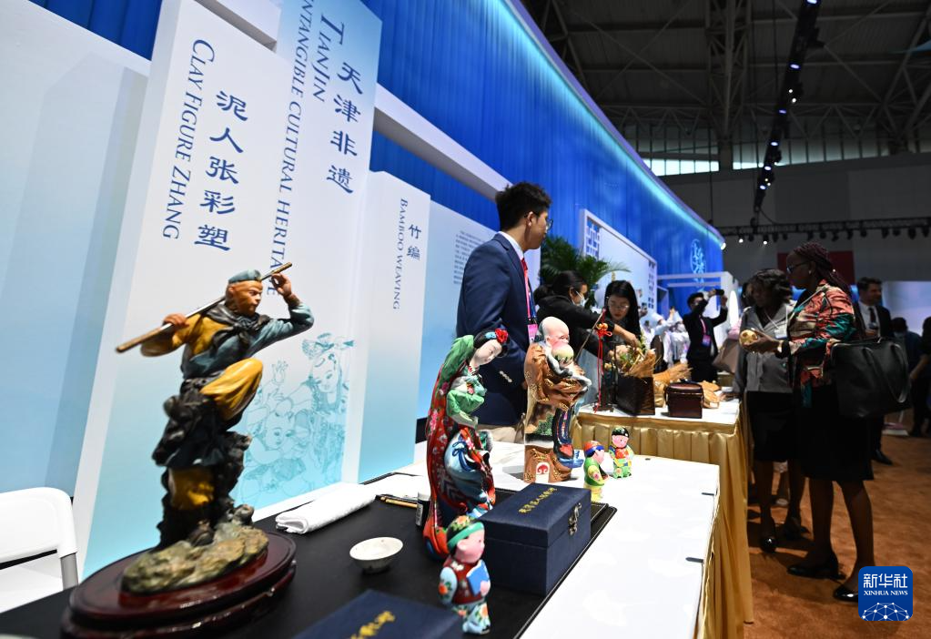 6月27日,與會嘉賓在第十四屆夏季達(dá)沃斯論壇文化之夜現(xiàn)場了解天津非遺項(xiàng)目。