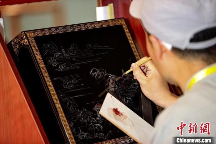 匠人在展示推光漆器工藝。(資料圖)張云攝