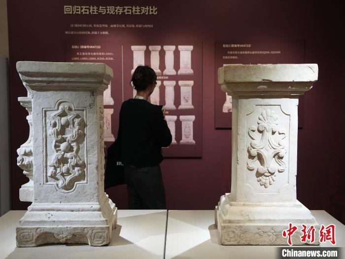 10月13日,“圓明園石柱回歸展暨2023北京公眾考古季”開幕式在北京圓明園博物館舉行。展覽集中展示7件圓明園流失石柱文物,均為漢白玉材質(zhì),推測(cè)均來(lái)自西洋樓遺址區(qū)。 記者 崔楠 攝