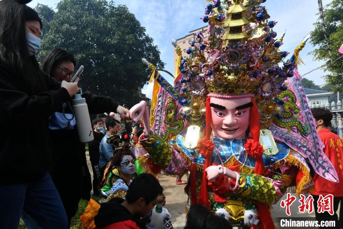 19日上午,一場傳統(tǒng)游神民俗活動(dòng)在福建省福州市長樂區(qū)潭頭鎮(zhèn)厚福村舉行,來自海內(nèi)外的游客紛紛舉起手機(jī)和相機(jī)拍照留影。中新網(wǎng)記者 呂明 攝