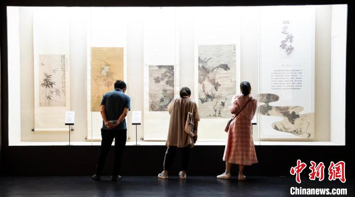圖為市民在重慶中國三峽博物館參觀古代花鳥畫。馬天龍攝