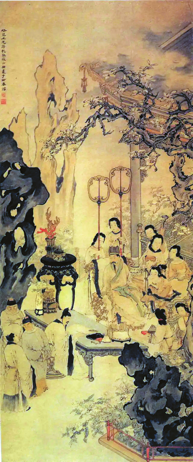 唐人李濬的《松窗雜錄》載,李白在長安任翰林待詔時,一日宮中牡丹綻放,唐玄宗與楊貴妃前往賞花,找來李龜年等人奏樂歌唱。但玄宗看了歌單,覺得都是些過氣的舊曲子,配不上眼前的名花美女,就讓李龜年趕快去找李白填新詞。當時李白宿醉未醒,趁著酒力秉筆賦詞,當場寫就三首《清平調(diào)》歌頌楊貴妃的美貌。待李龜年唱完,楊貴妃很高興,還親自領(lǐng)唱了這三首歌。唐玄宗也吹著玉笛伴奏,由此奠定了李白在盛唐詩壇“一哥”的重要地位。李白創(chuàng)作樂府詩的事情被收入《舊唐書》:“玄宗度曲,欲造樂府新詞,亟召白,白已臥于酒肆矣。召入,以水灑面,即令秉筆,頃之成十余章,帝頗嘉之?!边@段關(guān)于李白的佳話,在中國詩歌史上留下濃墨重彩的一筆。