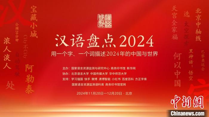 由國家語言資源監(jiān)測(cè)與研究中心、商務(wù)印書館等聯(lián)合主辦的“漢語盤點(diǎn)2024”20日在京啟動(dòng),“用一個(gè)字、一個(gè)詞描述當(dāng)年的中國與世界”,鼓勵(lì)全民用語言記錄生活,描述中國視野下的社會(huì)變遷和世界萬象。